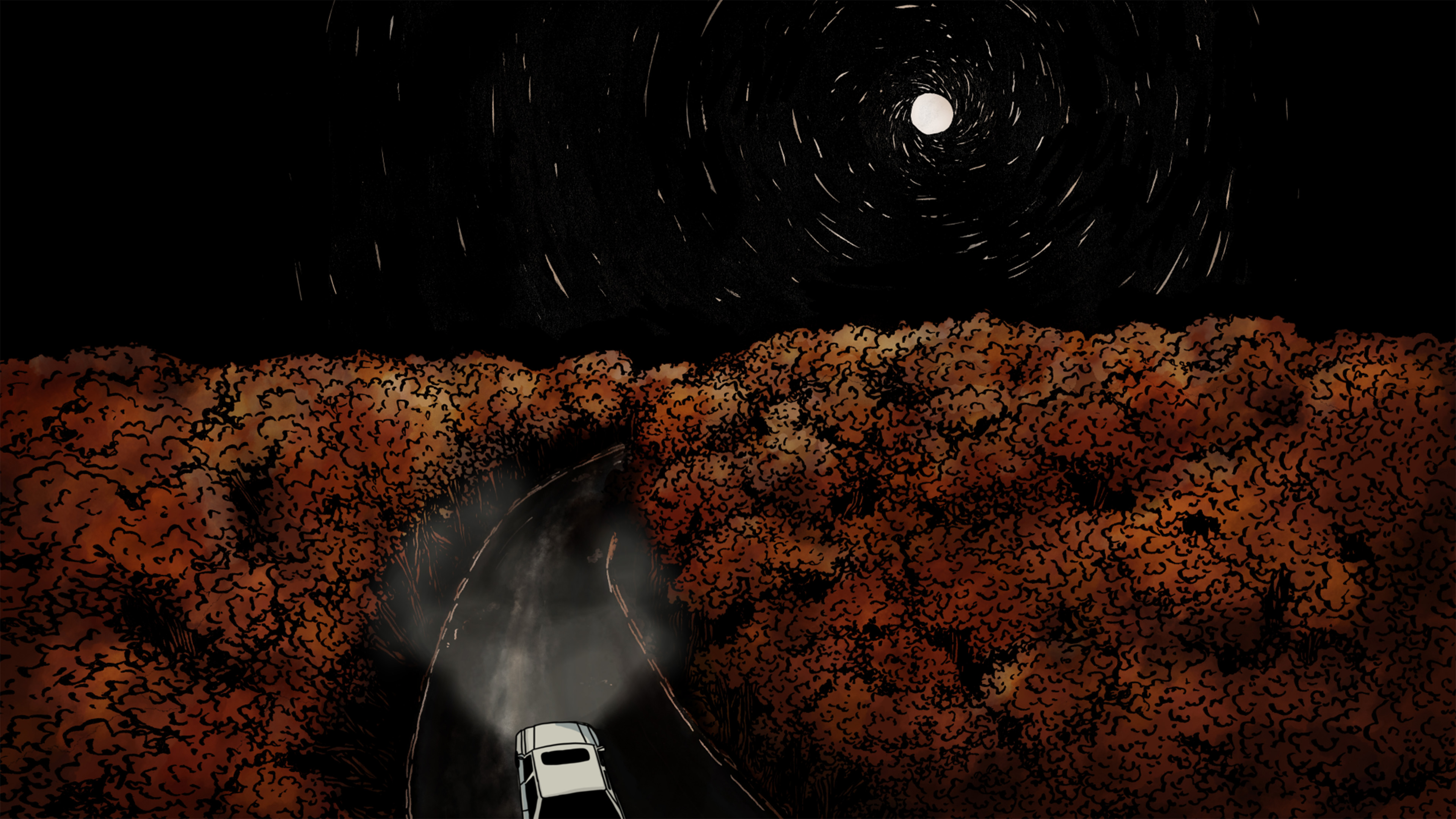 Een volhardende kraai volgt een eenzaam persoon door een oerbos totdat een bovennatuurlijke situatie ontstaat - gekenmerkt door brandende bomen, bewegende schaduwen en dansende geesten.